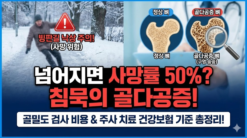고관절이 부러지면 거동을 못 해 합병증으로 사망할 확률이 암보다 높다는 사실, 알고 계셨나요? 이 모든 비극의 시작은 바로 '골다공증'입니다. 오늘은 내 뼈 나이를 확인하는 골밀도 검사 비용과, 뼈를 채워주는 치료제(주사/약)의 건강보험 적용 기준을 총정리해 드립니다.