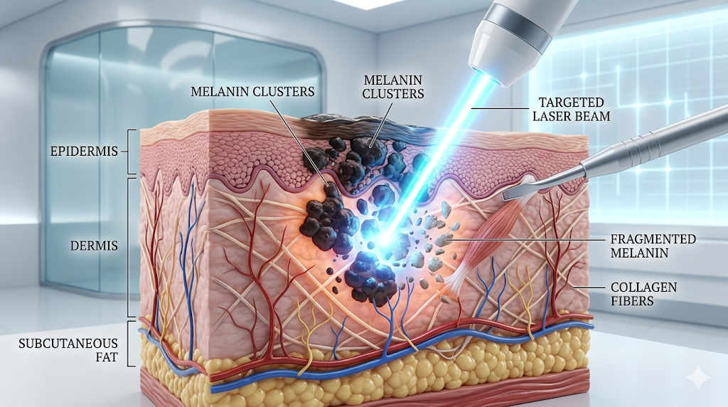 피부과에서 색소 치료를 위해 가장 많이 사용하는 장비는 '피코슈어', '피코웨이' 등으로 대표되는 피코 레이저(Pico Laser)입니다. 기존 레이저보다 1,000배 빠르게 색소를 잘게 부숴주어 효과가 뛰어납니다.